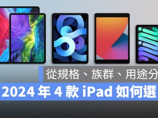 下面这边替大家大致上介绍各款 iPad 的特性,以及各款 iPad 优缺点所适用的族群,提供给要购买 2024 年 iPad 的人一个参考。