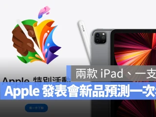 以上就是这次 Apple 特别发表会上有可能会推出的 4 大新品懒人包,我自己是觉得这次介绍的 4 项产品都非常也可能在 5/7 晚上 10 点的发表会上推出,毕竟无论是 iPad Pro、iPad Air 或 Apple Pencil 3 也确实都到的该更新的周期点了,而且 iPad Pro 传出要用 OLED 也已经很久了,所以这部分大家倒是可以期待一下。