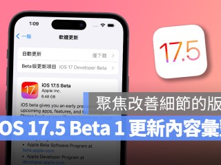 今日(4/3)苹果发布iOS17.5 Beta 1 更新;毕竟现阶段已是iOS 17发展的中后期,大多数功能都已趋于完善,因此这次 iOS 17.5 Beta 1 主要是聚焦在功能细节改善,这里简单带各位快速预览一下 iOS 17.5 Beta 1 的更新内容。
