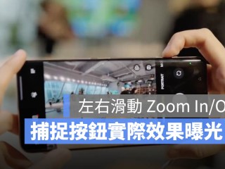 你可以从上面的展示视频中看到右上角有一个按钮,黄色的部分由左往右滑就代表着手指滑动的方向由左往右,就会 Zoom/out,由右往左就会 Zoom In,而估计是为了展示效果所以才把那颗按钮做得比较大比较明显,不然一般物理按键应该几乎是跟旁边的边框同样高度才对。