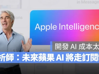 市场研究机构 Counterpoint 分析师 Neil Shah 认为由于训练 AI 实在太烧钱,未来苹果可能会把 Apple Intelligence 规划成订阅制服务,用户需付费 10 ~ 20 美元(约台币 245 ~ 650 元)才能使用 Apple Intelligence;又或是将 Apple Intelligence 纳入 Apple One 方桉,藉此将训练成本转嫁给消费者。