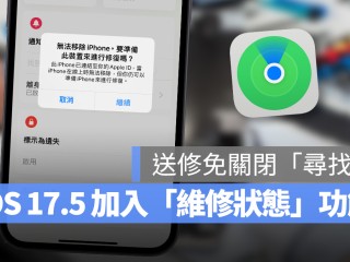 苹果在今日凌晨发布iOS 17.5Beta 4;本次更新除了修正系统问题外,比较重要的是导入全新「维修状态」功能,让用户在送修设备时不需特别关闭「寻找」功能,只要开启「维修状态」就能在设备送修的同时维持「寻找」功能正常运作。